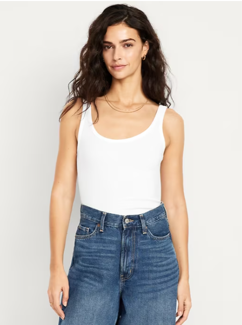 First-Layer Ribbed Scoop-Neck Tank Top