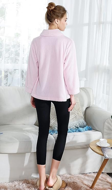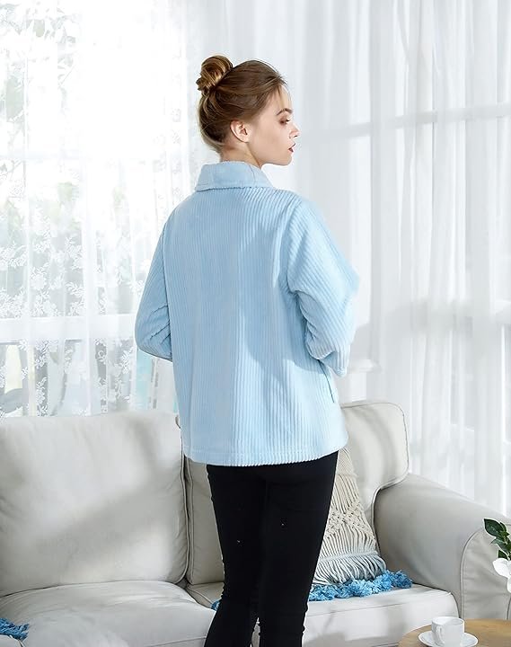 - Ultimate Coziness: Discover the warmth of our plush bed jacket, crafted from soft fleece, perfect for those cooler temperatures. Ideal for home or everyday wear, this polyester jacket is a must-have layering piece.
