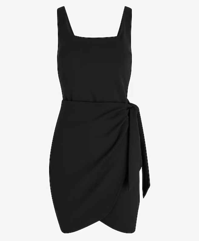 A mini dress that features a flattering silhouette, a wrap front, and a tie waist. Perfect for a night out with heels or great for casual weekend plans with sneakers.